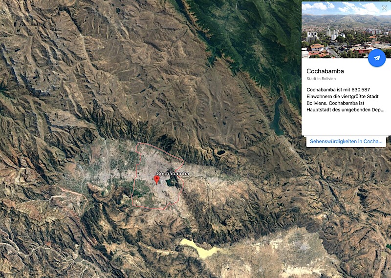 Cochabamba liegt, umringt von Bergen, in einem ovalen Hochplateau:
