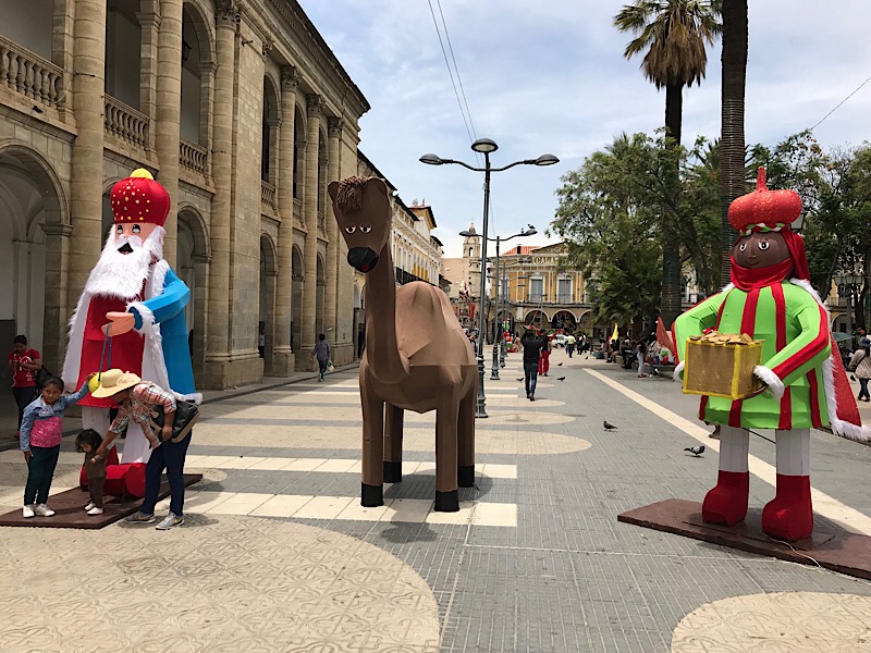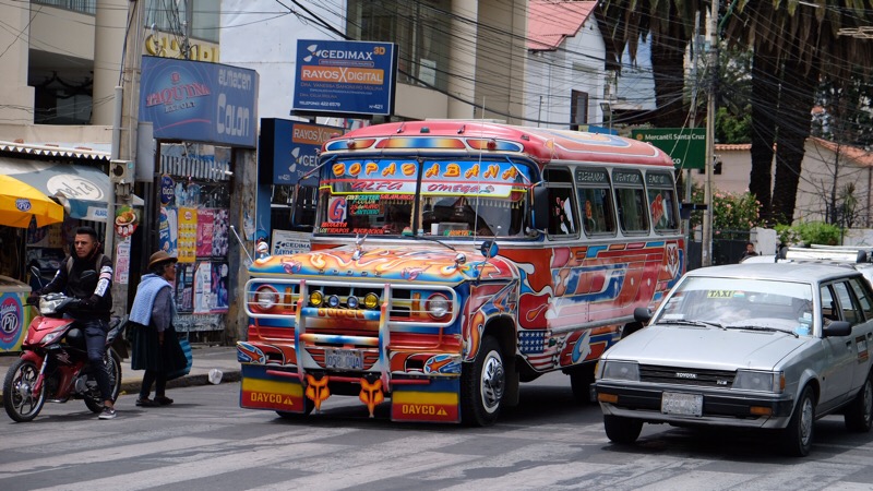 Nachdem wir uns einen Tag (mostly sleeping) im Biosfera regeneriert haben, möchten wir doch noch wenigstens eine kleine Vorstellung von Cochabamba gewinnen. Wir machen uns also im Verlaufe des Morgens des zweiten Tages via Micro-Bus* auf den Weg zum Stadtzentrum. *(Die Micro Busse in Cochabamba sind super coole, vor Kitsch-Deko strotzende kleine Nah-Verkehrs-Busse; jeder Bus hat dabei eine ganz eigene Ausstattung und ist sozusagen ein fahrender kleiner Kitsch-Microcosmos)