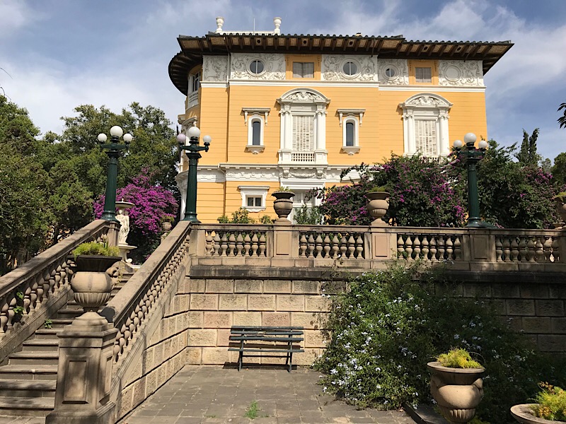 Der Palacio ist von seiner Historie her dem Wohnsitz der Argandoñas „la Glorieta“ in Sucre vergleichbar. Es handelt sich hier um einen als „Alterssitz“ geplanten Palazzo. Erbaut wurde er in 12-jähriger Bauzeit (1915-27) von der, durch die Zinn-Minen in Potosi zu grossem Reichtum gekommenen Familie Patiño. Da der Bauherr vor seiner Pensionierung einem Herzinfarkt erliegt, wurde der Palazzo nie durch die Familie bewohnt. Heute dient er als Zentrum für Ausstellungen und Konzerte. Der Wohnbereich des Palazzos kann besichtig (leider nicht fotografiert) werden. Er ist ein eindrücklicher Zeuge des eklektizistischen Fiebers neureicher Familien in Bolivien. Der Palazzo wurde von einem französischen Architekten geplant. Besichtigt man die Innenausstattung fühlt man sich in diverse verschiedene Kulturepochen und geografischen Räume versetzt. Da gibt es einen Konzertsaal in französischem Barock, eine Galerie in sakraler italienischer Renaissance, einen Billardsaal in orientaler Ornamentik, und Marmorstatuen im Garten, welche die Legende um die Schweizer Bernhardiner-Lawinenhunde illustrieren.