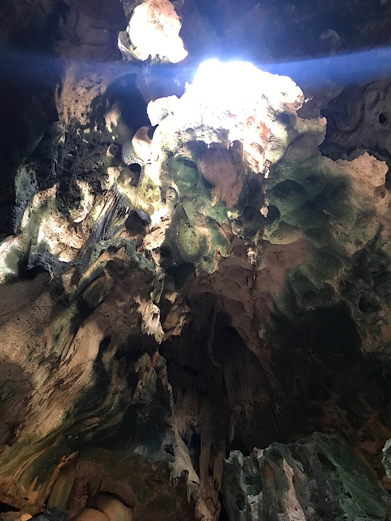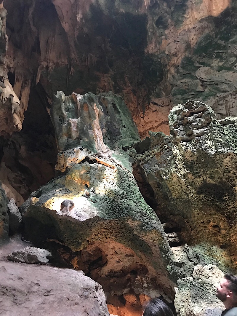 Die Höhlen beherbergen neben Stalaktiten und Stalagmiten auch kleine Fledermäuse. Damit diese Tiere möglichst wenig durch Blitzlicht gestört werden, darf man in den Höhlen nur an einem einzigen Ort fotografieren. Nämlich in jener Kammer, in der sich der Ausflugsschacht der Tiere befindet. Hier hat es natürlicherweise Sonnenlicht, das den Raum beleuchtet. Deswegen färben sich hier die Algen, die an den Tropfsteinen entstehen grün. So entstehen quasi natürliche Malereien.
