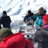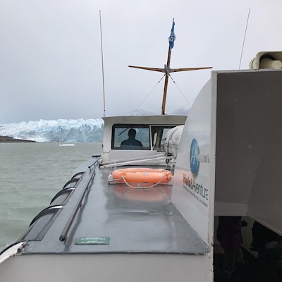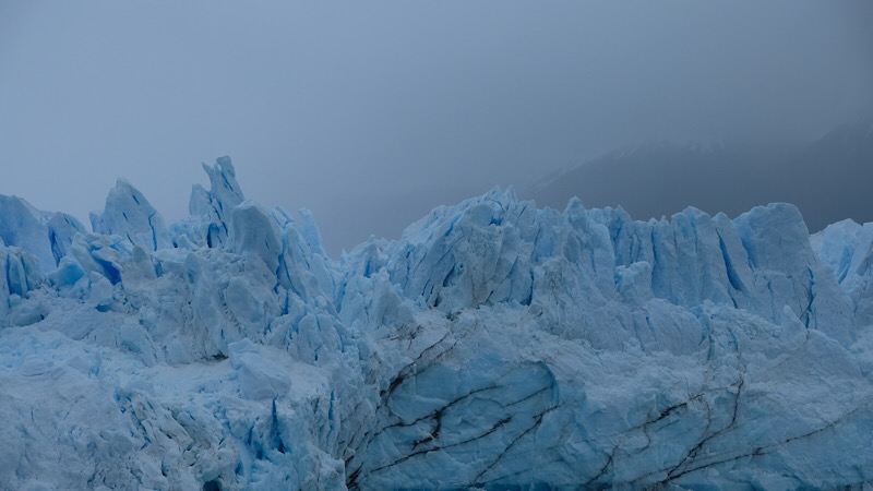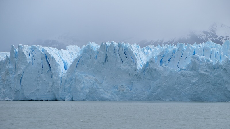 Nach dem (leckeren) Lunch auf den Heizkörpern des Restaurants, fahren wir weiter zum Hafen und kreuzen mit einem kleinen Boot zum südlichen Ufer. Auch diese Fahrt bietet erneut faszinierende Ansichten. So hält es uns nicht im geschützten Rumpf, sondern wir steigen die Treppe hoch zum windigen Deck des Schiffes und staunen vor diesen Eisformationen. Diese sind in etwa zur Zeit von Christoph Kolumbus in den Anden als Schnee gefallen; Wir sind nun also an dem Ort, an dem das Ei(s) des Kolumbus bricht...