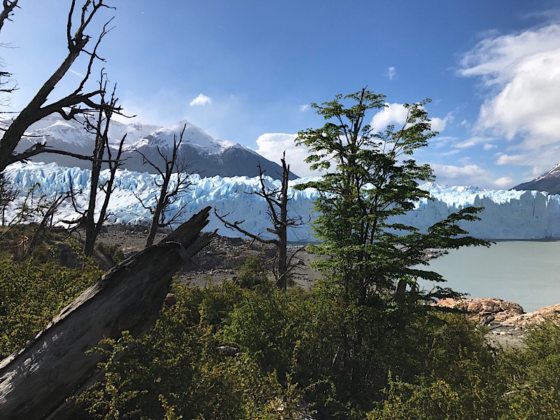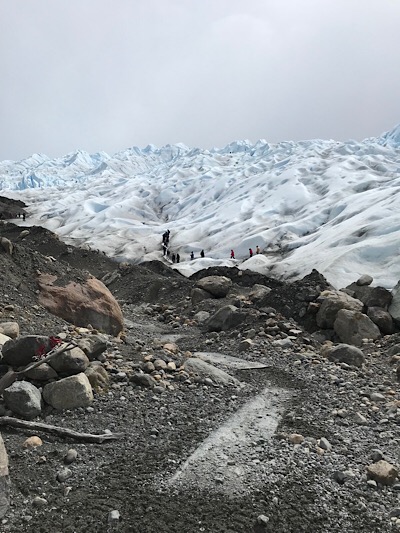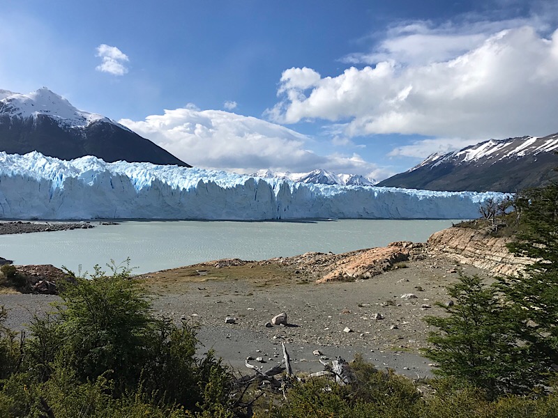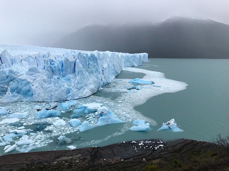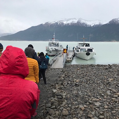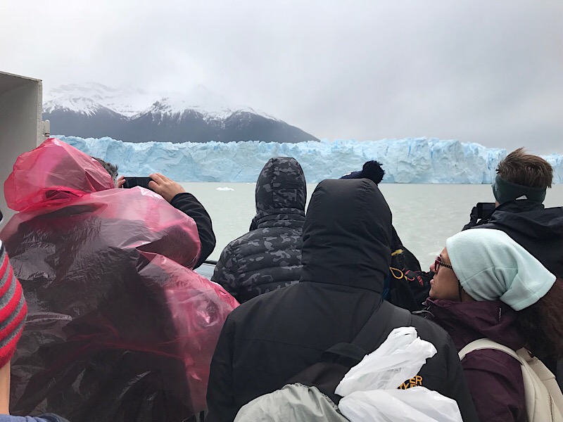 Unser Trip beinhaltet verschiedenste Aktivitäten und Informationen rund um den weltberühmten Gletscher Perito Moreno, der im Nationalpark „Los Glaciares“ liegt. Zuerst fahren wir mit dem Bus in den Park. Auf dieser Reise erfahren wir, welche klimatischen und geografischen Elemente die Bildung des Gletschers beeinflussen. Der Perito Moreno erstreckt sich, damit man sich das plastisch vorstellen kann, in etwa über eine Fläche so gross wie Buenos Aires! Der Abbruch am Ende der Gletscherzunge ist zwischen 50 und 70m hoch. Die Schneemassen, die in den Andengipfeln fallen, verdichten sich auf ihrem Weg hinunter in die Ebenen Patagoniens und schieben den Gletscher täglich 2m in den Lagos Argentino. Dort brechen dann riesige Eismassen von der Front des Gletschers und landen unter dumpfem Getöse im Wasser. Der Gletscher „kalbert“. Und ja, (hm...gut für den Gletscher, ;-/ ) in dieser Region regnet es viel...