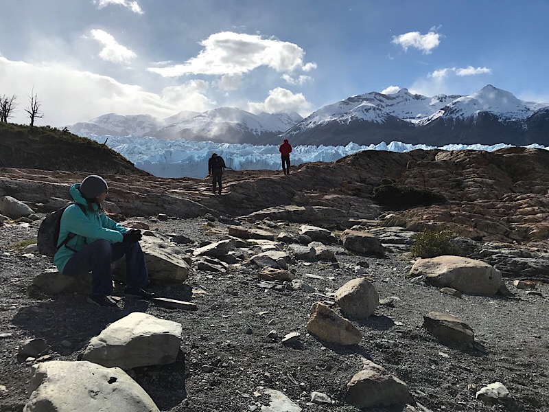 Nach einem feinen Frühstück verlassen wir die Pension mit einem kritischen Blick auf die Wetter-App: > hm... windy. Wir rüsten uns mit allem, was wir für die eher kälteren Klima-Zonen in unser Minimal-Gepäck verstaut haben. Gute Schuhe, Pullis, Regenjacke, warme Kappe, Handschuhe und Buff... sowie Sonnencreme und Brille für unser Gletschertrekking. Natürlich haben wir wegen des Gewichts-Reduktions-Kompromisses keine schwere dicke Hochgebirgs-Kleidung dabei, aber inspiriert vom patagonischen Vorbild das Zwiebelschalenprinzip umgesetzt.