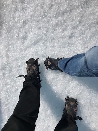 Als wir nach dieser ersten Wanderung vollkommen durchfroren wieder zum Schutzhäuschen aufsteigen, können wir uns nur schwer vorstellen später noch ein zweistündiges Steigeisen-Trekking auf dem Gletscher zu bewältigen. Es ist uns einfach zu nass und mit dem Wind richtig eisig kalt.