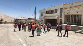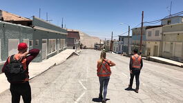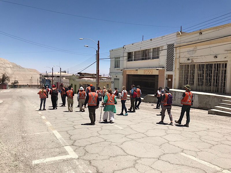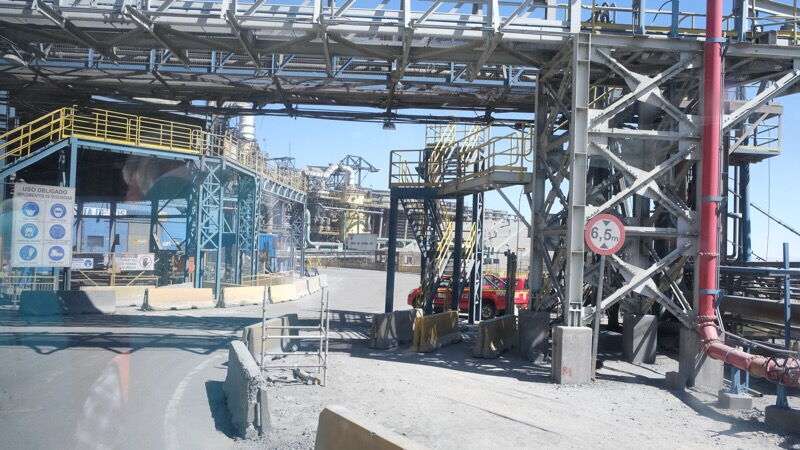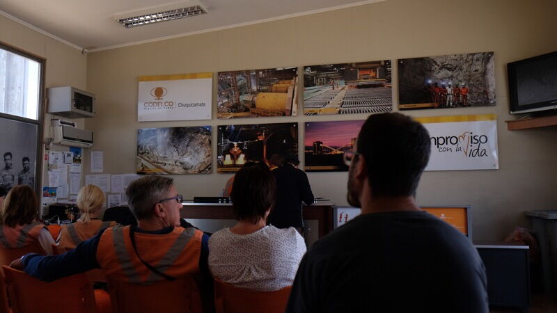 Von La Serena reisen wir in 15 Stunden (Tages-)Busfahrt nach Calama, einer Stadt, die gemäss Reiseführer nicht viel für Touristen zu bieten habe. Wir wählen sie eigentlich als Zwischenstation zur Weiterreise nach San Pedro de Atacama. Als wir uns die Route nach Calama auf der grossen analogen Chile-Karte ansehen, entdecken wir nahe der Stadt einen roten Stern...aha die Stadt hat also doch einen Point of Interest! Und dieser ist unserer Meinung nach nicht zu verachten: die Kupfermine Chuquicamata, die grösste Kupfermine der Welt im „Über-Tag-Bau“. Wir recherchieren und finden heraus: Die Betreiberfirma Codelco bietet gratis Besichtigungen an! Als Entgeld kann man eine freiwillige Spende für ein Kinderhilfswerk machen. Das tönt doch interessant. Wir versuchen also für die zur Diskussion stehenden Tage einen Platz in der Tour zu bekommen. Leider ist alles ausgebucht. - Aber... es gibt eine Warteliste, die bei Nicht-Erscheinen von angemeldeten Personen die freien Plätze vergibt. Voraussetzung ist allerdings, dass man zum entsprechenden Zeitpunkt persönlich vor den Schaltern der Codelco erscheint. Gemäss den Berichten von anderen Reisenden, scheint die Warteliste, jedoch recht guten Erfolg zu bringen. Also lassen wir uns eintragen und tatsächlich, wir haben Erfolg: mit orangen Westen und Helmen ausgerüstet, sind wir Teil der Tour...und diese ist wirklich beeindruckend.