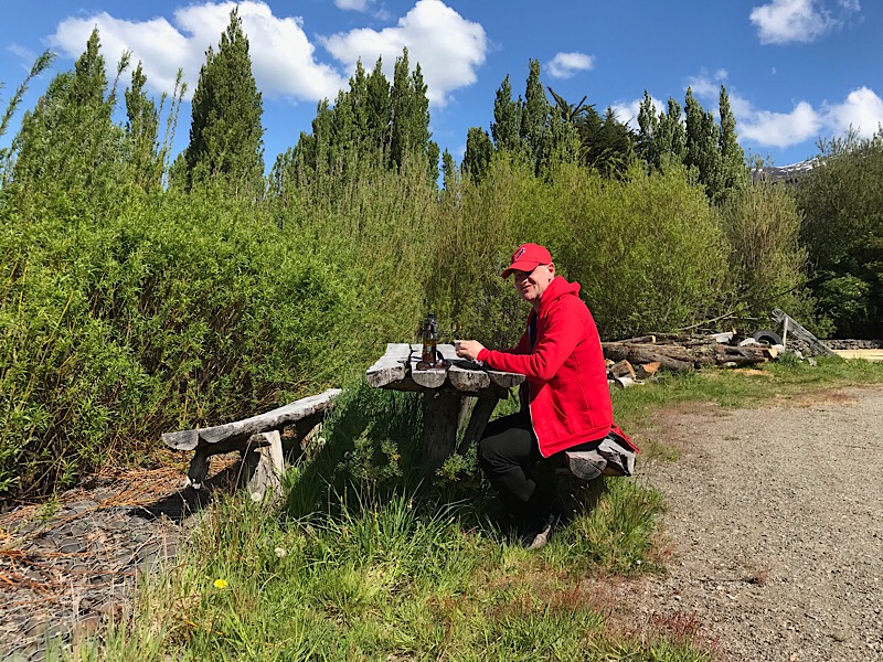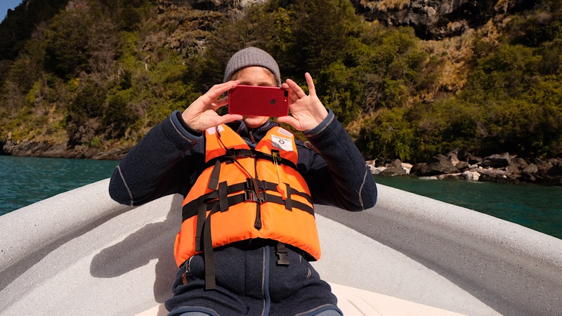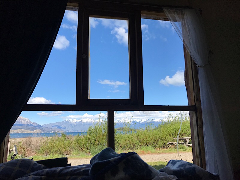 Was wollen wir mehr. Wir haben unser eigenes kleines Haus mit guter Luft, Ruhe, einer Vermieterin, die uns selbst gemachtes Brot und Eier ihrer Hühner als Geschenk vorbeibringt, einer einzigartigen Aussicht auf den See (und das direkt vom Esstisch und dem Doppelbett aus), dann gibt’s noch einen Tisch und eine Bank um draussen zu essen. Wir erproben uns im Einfeuern, knuddeln die Hunde, die uns sofort adoptieren, schlafen so richtig aus und freuen uns auf den Bootstrip zu den Marbel Caves.