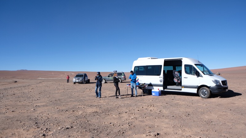 Danach wechseln wir den Fahrer/Guide und das Fahrzeug. Die Tour wird von Jonny (ob das wohl sein richtiger Name ist), einem jungen Bolivianer, durchgeführt. Er ist der Driver eines 4-Rad-Antrieb SUV. Jonny ist Guide und Driver in einem, er wird uns zu den verschiedenen Hotspots der Reise fahren, das Auto warten, die Verpflegung und die Unterkünfte organisieren.