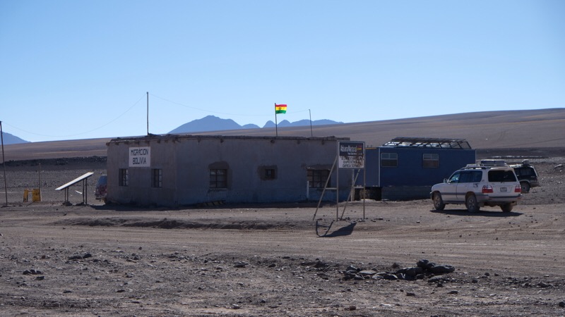 Zuerst geht es mit einem Shuttle-Bus innert kürzester Zeit auf 4700m Höhe. Auf dieser Höhe befindet sich der Zoll nach Bolivien. Durch die Zollformalitäten führt uns unser chilenischer Shuttle-Bus Fahrer; diese sind, da die beiden Länder nicht die besten Beziehungen haben, absurd kompliziert und in der grossen Höhe für Unterländer eine kleine Herausforderung... :-) ähm...keuch, wie war mein Name doch nochmal?