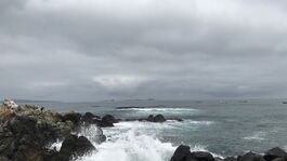 Das macht Spass, so nah an der Gischt zu sitzen. Wir sehen das zweite Boot, das gleichzeitig mit unserem übersetzt immer wieder in den Wellentälern verschwinden. > (ab 00:17)