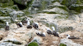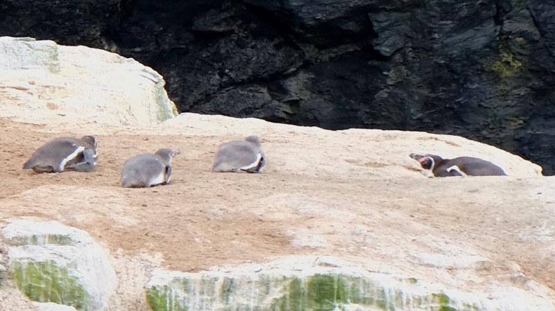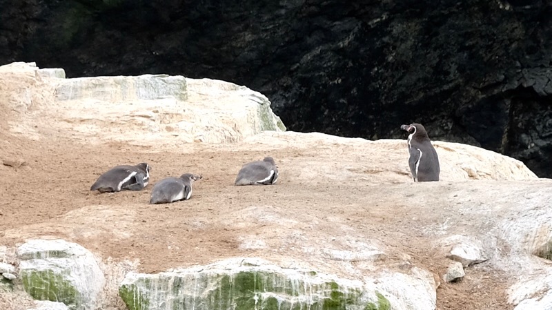 Wir wissen, dass man bei den Humboldt-Pinguinen die erwachsenen Tiere an den seitlichen Streifen erkennt, welche die Jungtiere erst im Laufe der Zeit entwickeln. 80% der weltweiten Population dieser seltenen kleinen Pinguine leben hier auf dieser Insel.