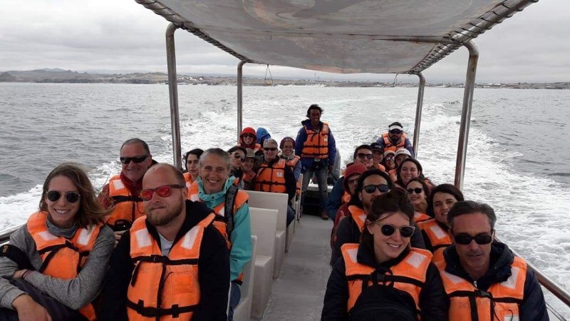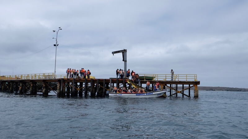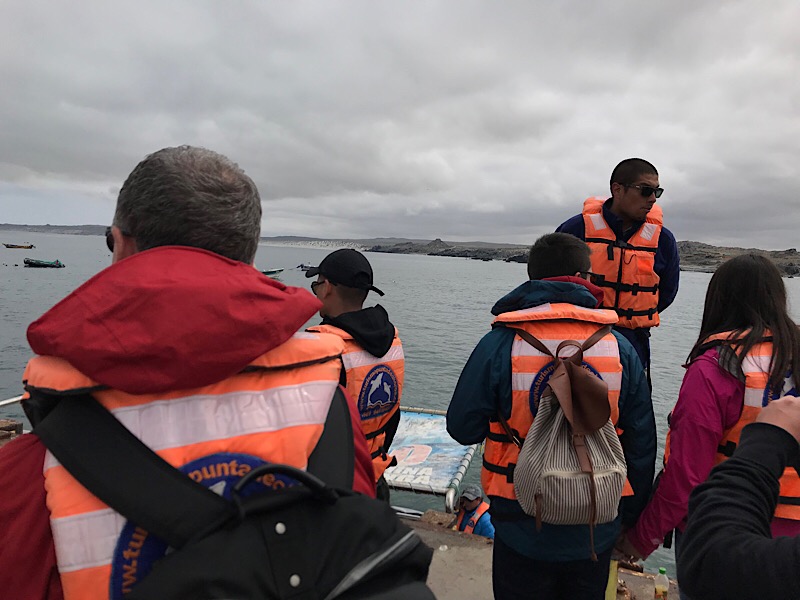 Im Hafen Punta Choros angelangt, rüsten wir uns mit Schwimmwesten aus und werden mit Instruktionen zum Einsteigen auf das Schiff versorgt. Bei recht bewegter See setzen wir mit einem Boot, das circa 24 Personen fasst, zur Insel Isla Choros über.