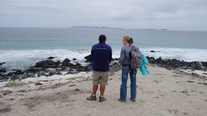 Wir werden vom Kleinbus direkt in unserem Hotel abgeholt und fahren dann mit Felipe, unserem energiegeladenen Tourguide und Driver, zu den circa 120km entfernten Islas Damas. Wer glaubt, die Fahrt durch mehr oder weniger wüstenähnliche Landschaft wäre langweilig, täuscht sich gewaltig. Felipe ist ein echter Alleinunterhalter. Während er uns im Verlaufe der Fahrt mit vielen Facts und Hintergrundsinformationen zur Exkursion versorgt, betreibt er auch noch Gruppenbildung, und lässt uns durch geschickte Rhetorik auf zusätzliche Überraschungen hoffen. Gleichzeitig organisiert er während der Fahrt den Mittagstisch, macht Gruppenfotos für Facebook, füllt Kontrollisten aus und lockert mit seinen Spässen die Stimmung unter den Exkursionsteilnehmern.