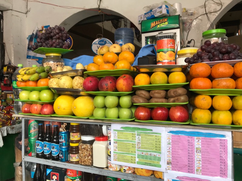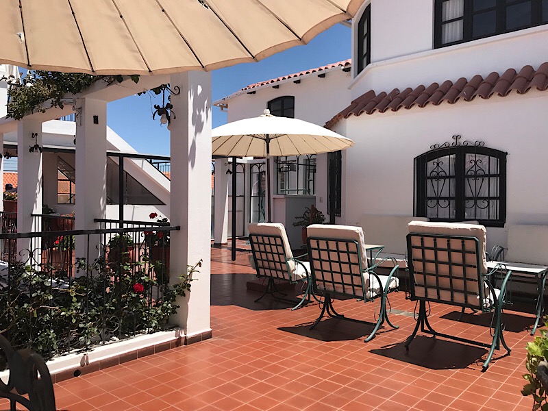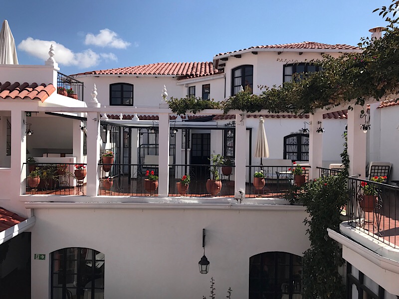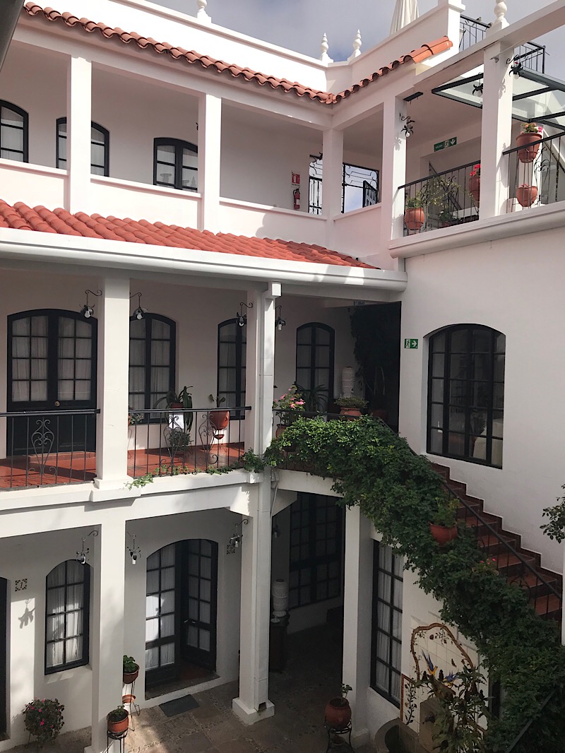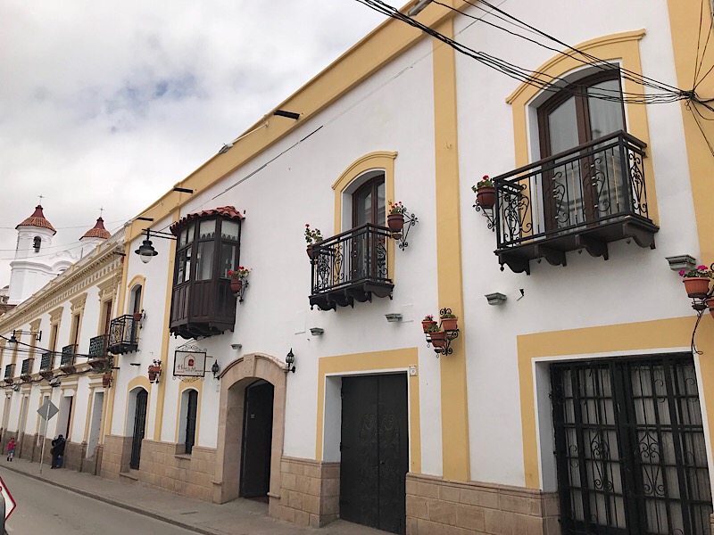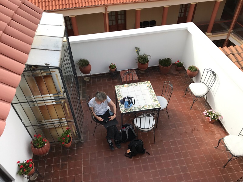 In Sucre bleiben wir mehrere Tage. Wir haben ein super Hotel gefunden, das nahe an der Plaza Mayor liegt, den Charme der alten Kolonialarchitektur pflegt und inmitten der vom Verkehr geplagten Innenstadt eine Insel der Ruhe bietet. Dies, da viele seiner Zimmer in den schmucken Innenhof gerichtet sind. Auch das Frühstück ist super lecker, mit vor Ort gereiften Früchten, Säften und jeden morgen frisch zubereiteten Pies in reichen Variationen.