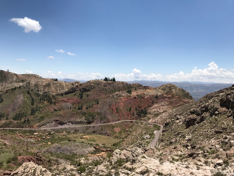 Umwerfend!! Irgendwie erscheint es uns, wir hätten in 30-jähriger Töfferfahrung noch nie eine landschaftlich so geniale Tour gemacht. Weite, Höhe, leuchtend sattes Grün, dunkles Rot, Blaugrau, Ocker gelb, und fifty-shades of brown ;-) in wunderbaren Mischungen. Ein Pass von 3800m und eine faszinierende landschaftliche Erscheinung: einen Krater, der eigentlich eine Verwerfung von Erdkrustenplatten ist, und der an den Rändern aussieht wie eine kunstvoll gestaltete Sahnetorte.(Leider haben wir zur Landschaft nur wenig Fotomaterial, da wir ja die Hände am Lenker hatten :-))