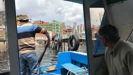 Nachdem der Bootsführer 10 Reisende auf seinem Schiff zusammengepfercht hat, startet er endlich den Aussenbordmotor und steuert das Boot in Schräglage über den See Richtung Grenze.
