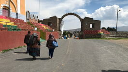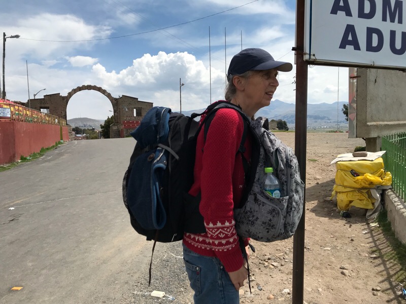 Na ja, als erstes denken wir, wir hätten den Abfahrtsort des Busses missverstanden und wenden uns für eine Auskunft an eine Dame, die ihren Kopf aus der einzigen offenen Agentur am Platz streckt. Die Dame erklärt uns, dass heute kein Bus und kein Taxi zur Grenze fahre, da es eine Strassenblockade gebe. Alle Reisenden seien mit ihrem schweren Gepäck zu Fuss los gewandert, um das 8km entfernte Grenzdorf Kasani zu erreichen. Die Busse ihrer Gesellschaft (Titicaca) seien die einzigen, die auf der peruanischen Seite des Zolls die Strecke Kasani-Puno bedienten.... und ja, sie könne uns ein Ticket für einen dieser Busse verkaufen.... wie wir denn zur Grenze gelangen könnten?....zu Fuss eben, meint die Dame.